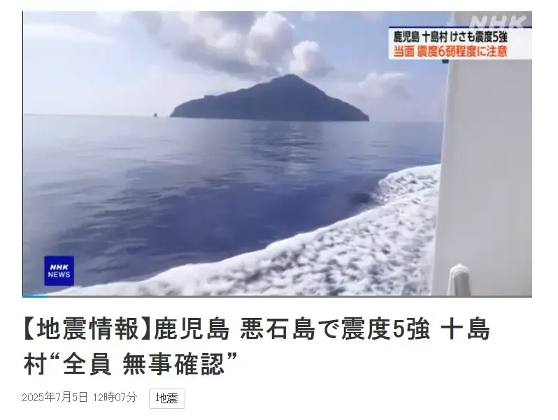 当地时间7月5日凌晨4时,针对日本全国紧急地震速报的YouTube直播吸引了接近25万观众的实时关注,等待所谓“大地震预言”是否应验。然而,截至东京时间上午11时,日本全境未发生任何异常地震活动,仅鹿儿岛附近的吐噶喇群岛外海上午8时左右出现5.3级的小规模地震。